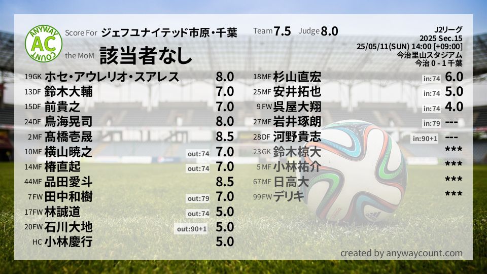 #ジェフユナイテッド市原・千葉 #J2リーグ Sec.15採点