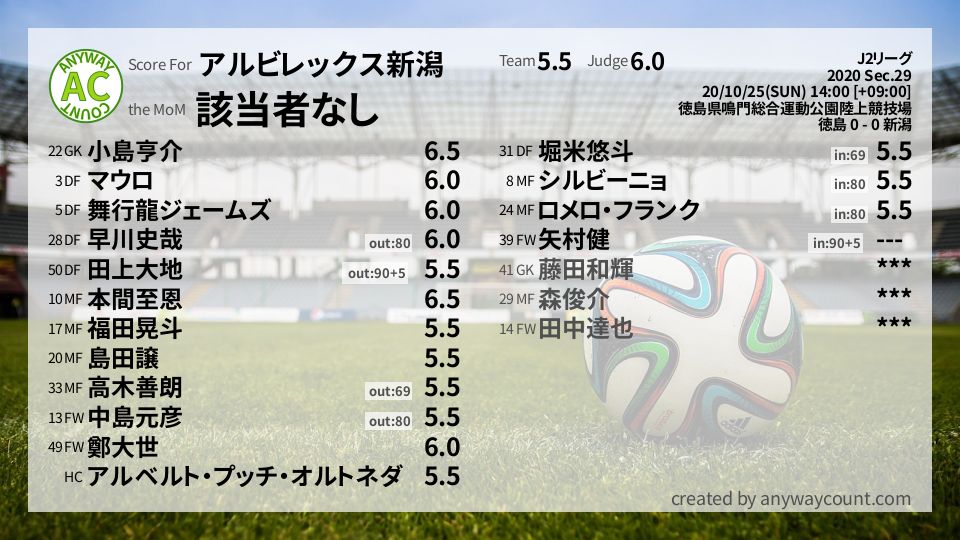 #アルビレックス新潟 #J2リーグ Sec.29採点