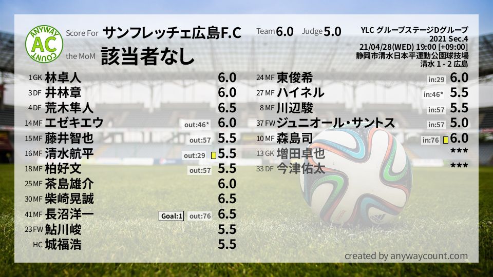 私も清水を採点 私も広島を採点