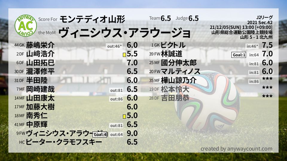 #モンテディオ山形 #J2リーグ Sec.42採点