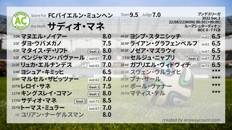 #FCバイエルン・ミュンヘン #ブンデスリーガ Sec.3採点